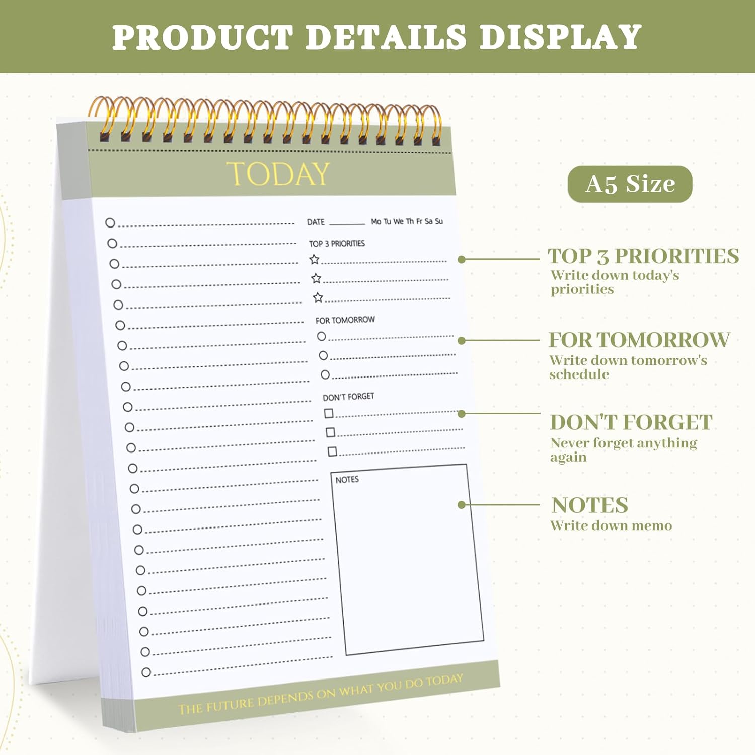 【Spiral Binding Design】The to do list pad is bound in spirals, which is convenient for turning pages or tearing off used pages to make plans again.