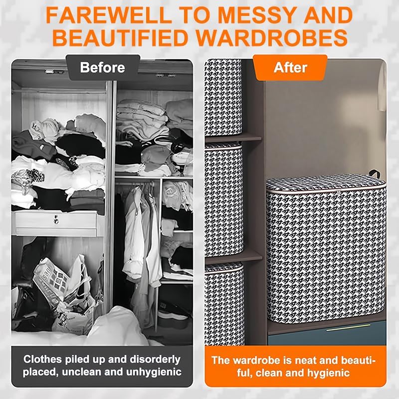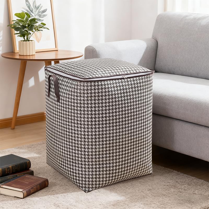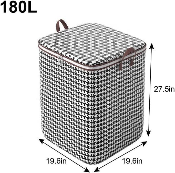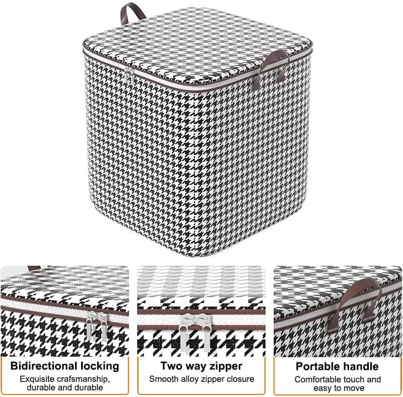Household Storage Bag with Secure Lid & Side Handles, Seasonal Clothing Heavy Bedding and Daily Items Organizer for Bedroom Closet Living Room Laundry Room, Houndstooth