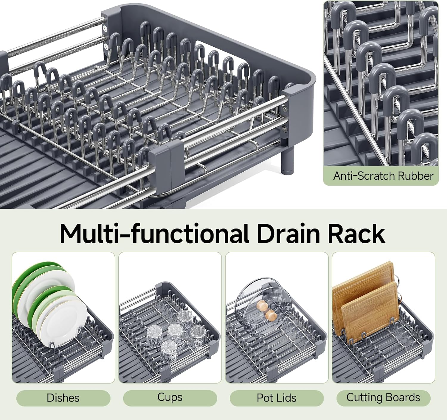 DURABLE & MODERN FINISH: Constructed from robust stainless steel and high-quality plastic, the KINGRACK drainer is built for daily use. Its sleek, polished surface resists fingerprints and complements modern kitchen decor, combining long-lasting performance with a stylish appearance.