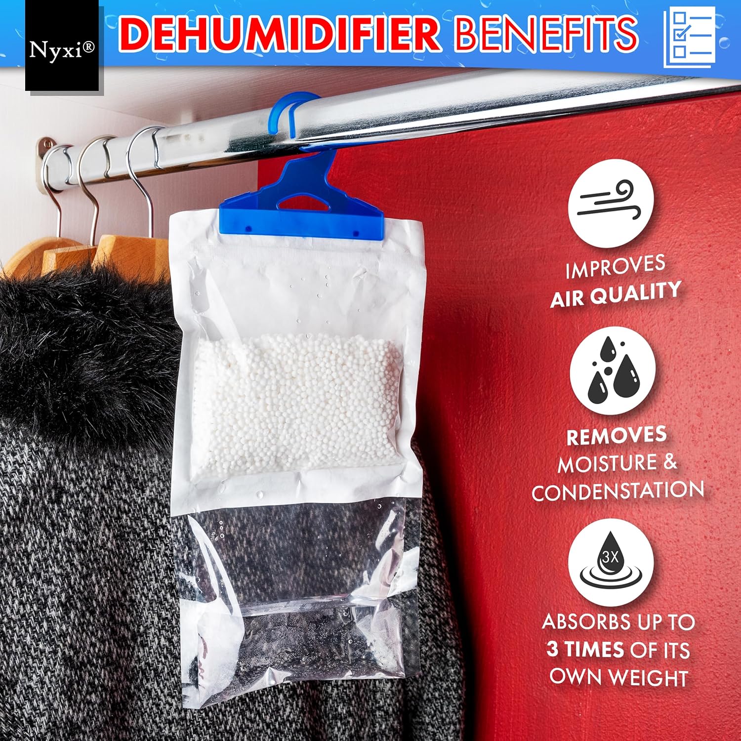 Nyxi Hanging Wardrobe Dehumidifier – 230g Each Bag